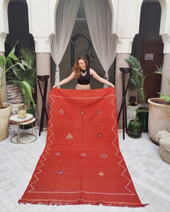 This Sabra Kilim is a traditional Berber carpet, which is an exceptionally one-of-a-kind piece - leaving every home tasteful and radiantly charming.